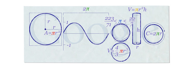 It is unsurprising that π has received its own day and less surprising still that it is 14 March or 3/14 in the US. Google celebrated π day 2010 by releasing a mock up of its trademark: